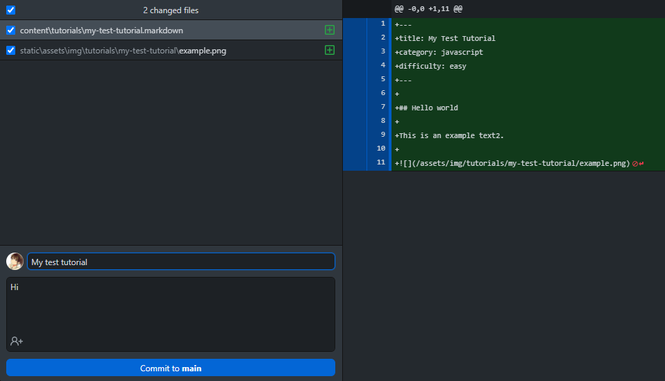 We are now ready to contribute back to the main project. Start with writing a title and description for the changes you’ve done. The title should be short and concise.