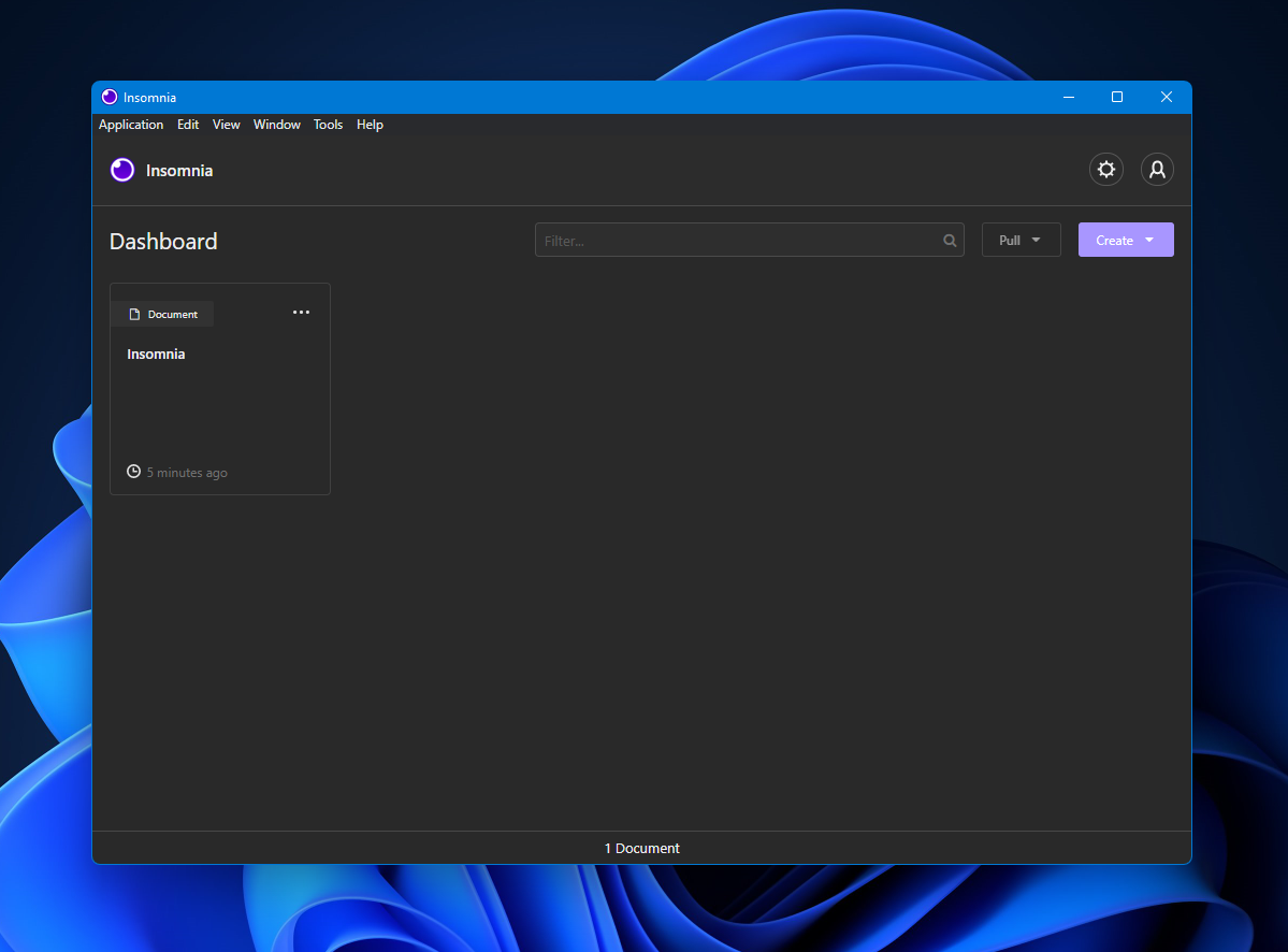 Simply click the downloaded EXE (or binary for your operating system) and Insomnia will install automatically. Once installed you should see a window similar to the one in the picture below. Theme can be changed in the top right corner by clicking the “Gear” icon. The remaining of this tutorial we be using the “Hyper” theme, but the steps remain the same.