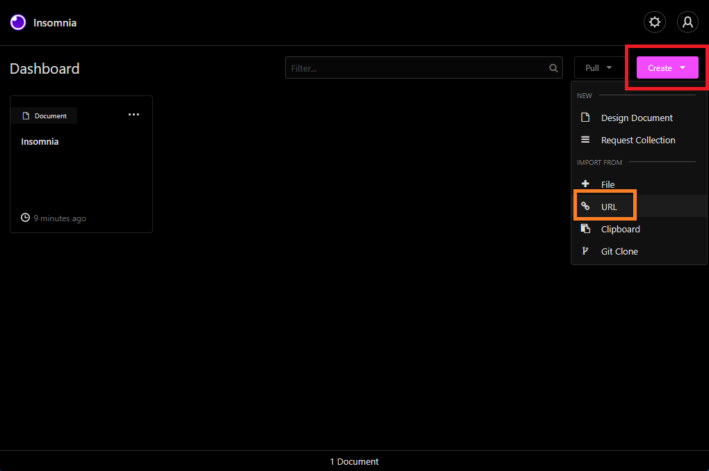 Click in the top right corner “Create > URL”, and in the following pop-up box enter the following URL and press “Fetch and Import”: