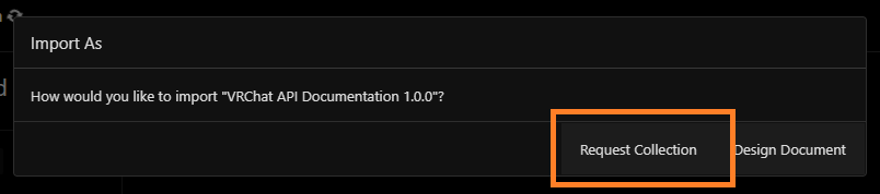 On the next window you will be asked if you want to import it as “Request Collection” or “Design Document”. As you will be using the API and not designing it, you want to press Request Collection here.