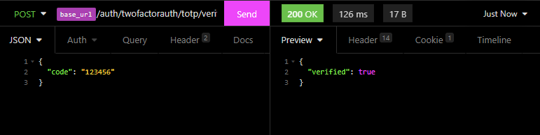 If you do not have 2FA enabled (strongly recommend you do!) then you should see your own user information returned on the right side. If you do have 2FA enabled (good job!) you need to locate the “Verify 2FA code” endpoint on the left, click on the “JSON” tab in the middle, and then replace string with the real code from your 2FA generator app. If everything validated correctly you should see verified: true in the response. You can now go back to the “Get Current User Info” endpoint and try get your own info again.